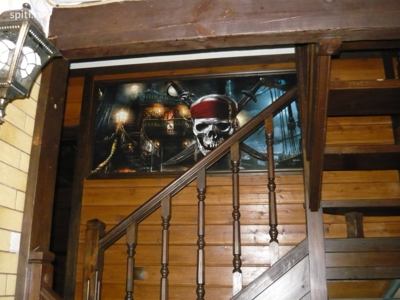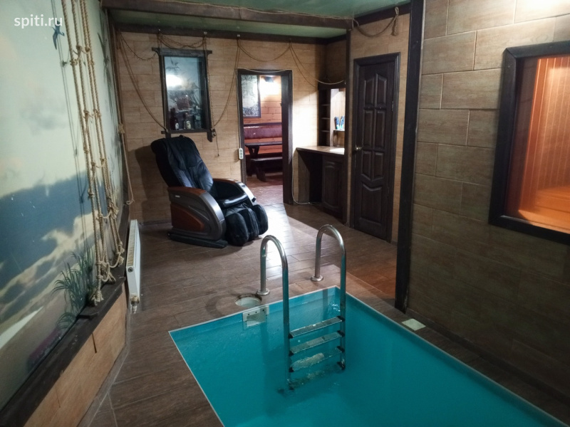 Двух этажный дом в пиратском стиле . 5 кроватей .Сауна включена 3 часа .Теплые полы . Стол на 12 персон .Ландшафтные работы озеро водопад фонтан . беседка с камином + место под казан или вечером просто посидеть у костра . Можно по часам 1500 р.по суткам 1500 р.чел. Мин.сумма 8000 р.